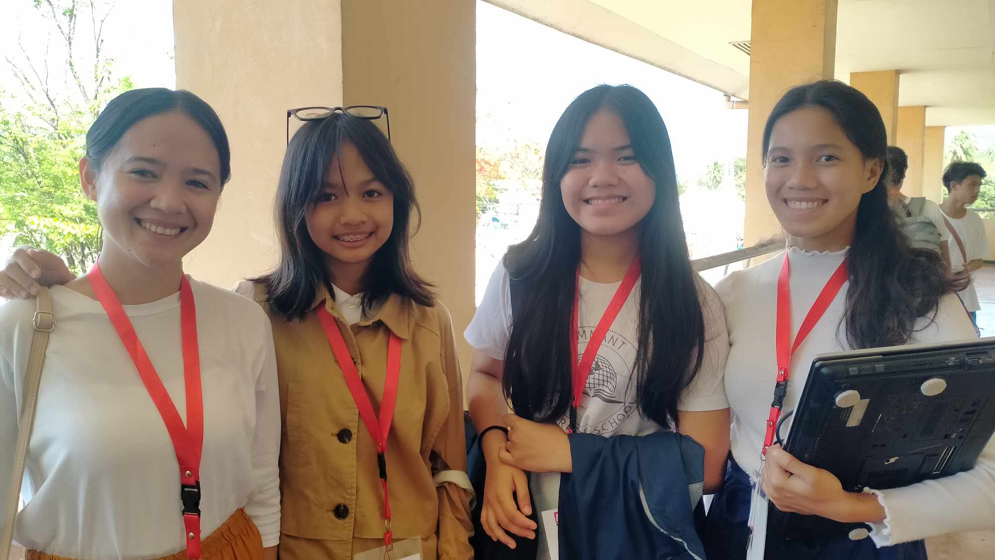 Juve, Jong's wife, and her daughter with some students.